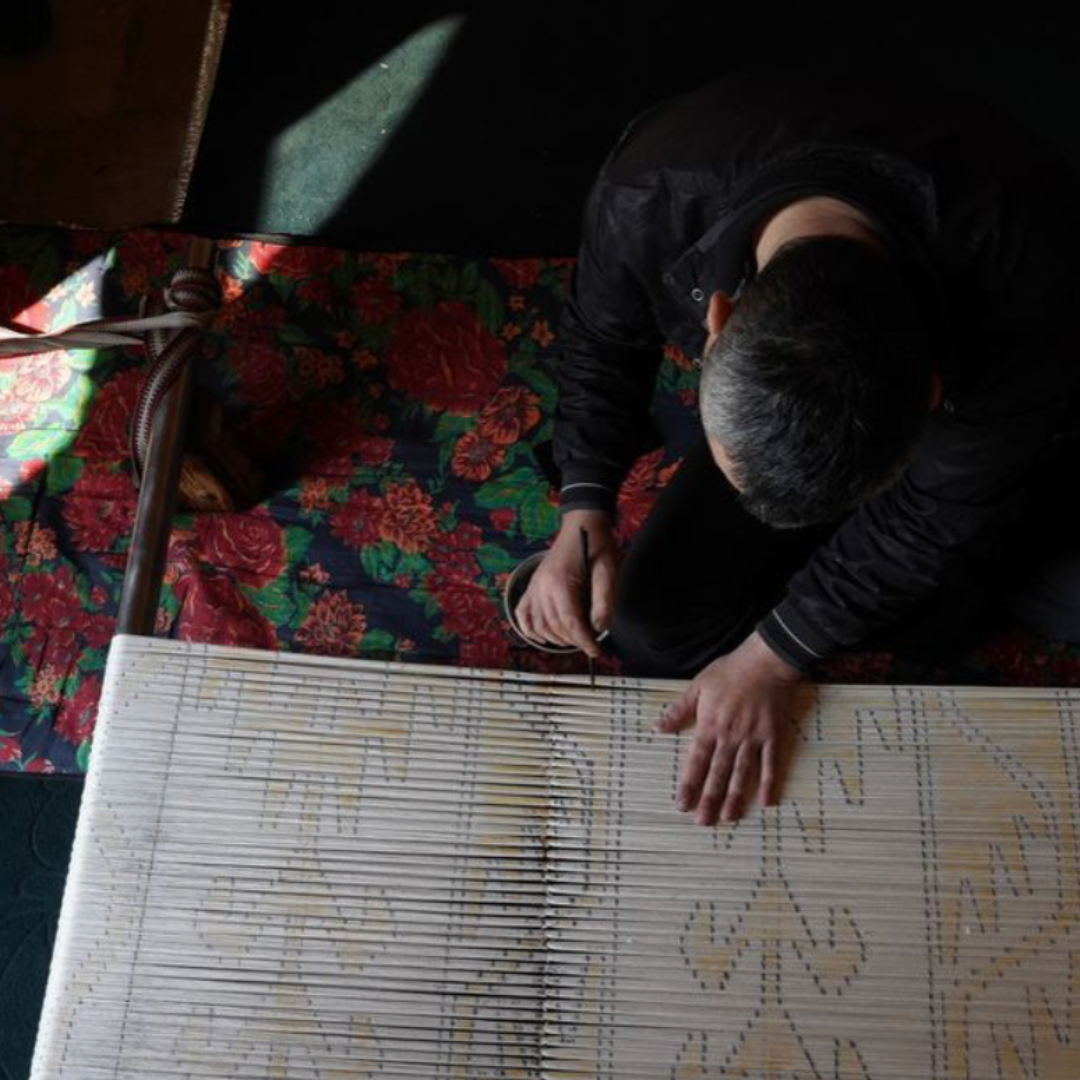 The threads are then stretched onto a loom under the supervision of a craftsman. Even today we use only hand looms.